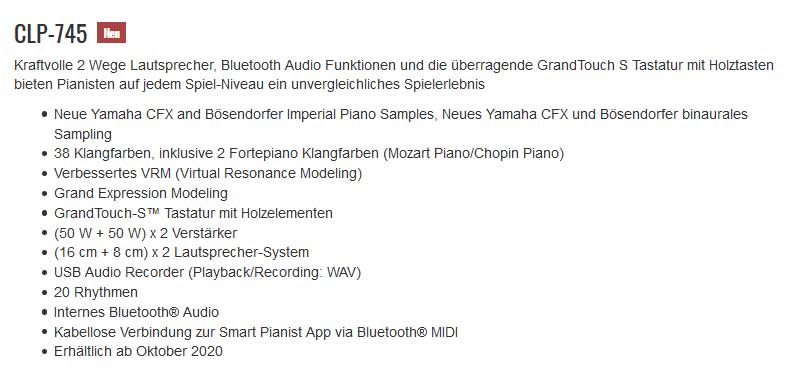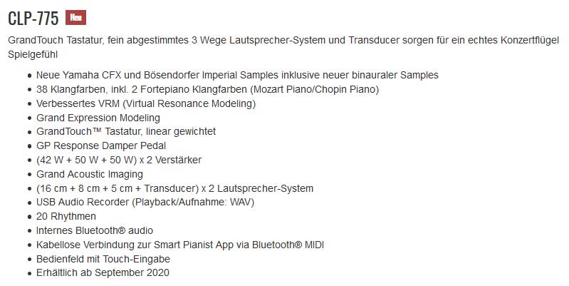 wegen der leichtgewichteten GHS-Mechanik nur bedingt für Klavierspieler geeignet, |