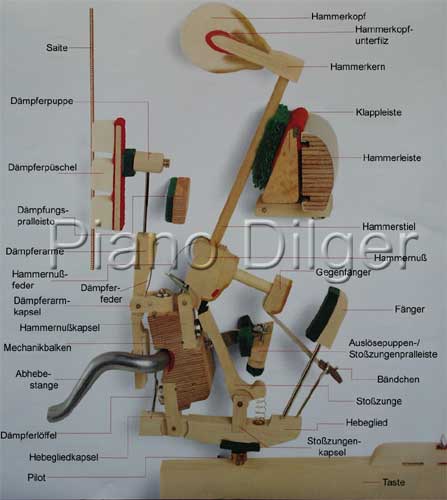 Auch zur Zeit dieses berühmten Zitates aus der Feuerzangenbowle funktionierten Klaviermechaniken schon genauso, wie die Firma Renner, deren Modelle und Darstellungen wir für diese Seite verwendet haben, es heute im Jahre 2015 beschreibt: