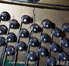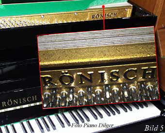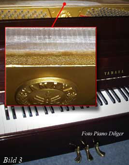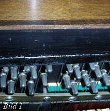insbesondere für Instrumente ohne Vollpanzerrahmen. Bild 1 zeigt ein Klavier mit Massivholzstimmstock und Aufdopplung hinter dem schwarz lackierten Rahmen. Die